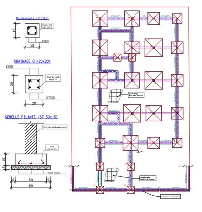 Les plans de ferraillage des éléments porteurs (semelles, poteaux, poutres,...).