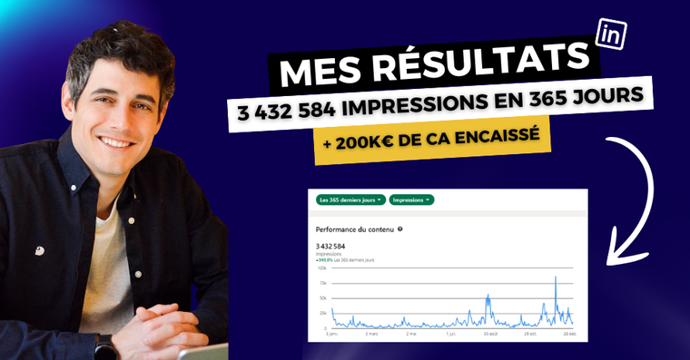 J'accompagne depuis 12 mois des grands dirigeants et en moyenne leurs comptes gagnent 5000 à 10 000 abonnés par an et +100K€ de chiffre d'affaire pour 2/3 posts par semaine.