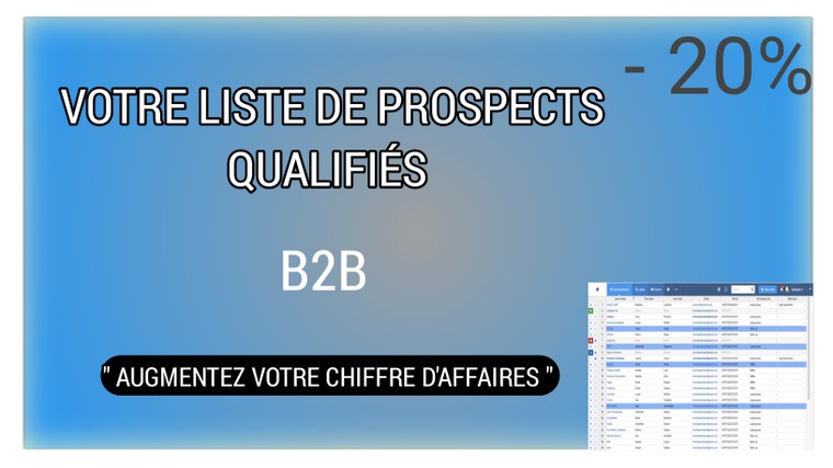 Avec moi vous avez accès à des prospects qualifiés de domaine de BtoB. Mes recherches s'activent sur les plateformes comme LinkedIn, Google, Leboncoin.
