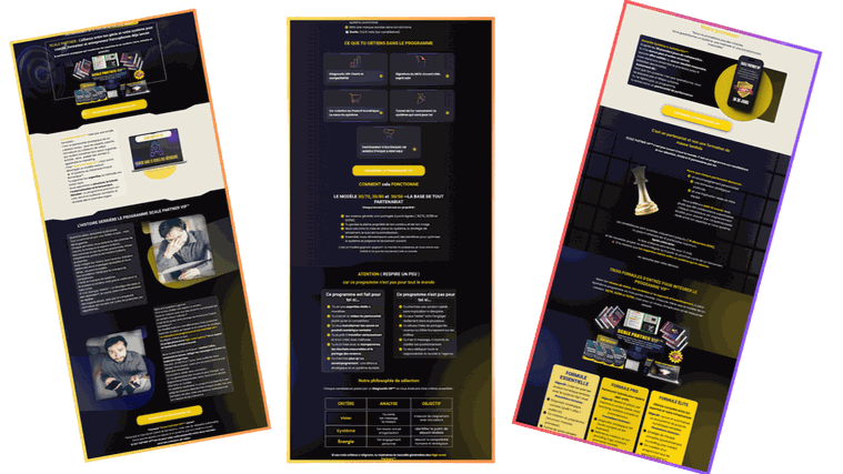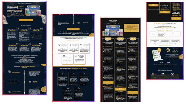 Tout le tunnel est basé sur du copywriting stratégique. Chaque mot est là pour déclencher l’envie, l’urgence, la confiance. Ce n’est pas une page, c’est un argumentaire de vente ultra-ciblé.