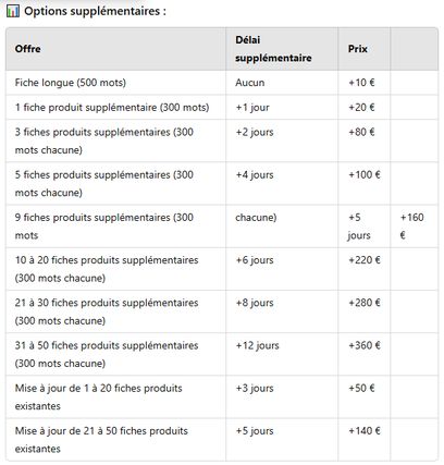 31 à 50 fiches produits supplémentaires (300 mots chacune)