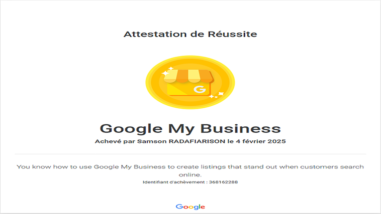 Passionné par le digital, je mets mon expertise au service de vos projets pour garantir leur succès. 💻 En tant que graphiste créatif 🎨, je transforme vos idées en visuels percutants. Mon expérience en gestion de communauté 👥 me permet d'animer et de fédérer vos audiences avec efficacité. Je maîtrise les techniques de prospection 📞 et de marketing digital local 📍 pour booster votre visibilité et augmenter vos ventes. En tant qu'assistant virtuel 🧑💻, je gère avec rigueur la planification de vos rendez-vous et l'organisation de vos tâches quotidiennes. Ma polyvalence s’étend également à la rédaction web ✍️, où j’optimise chaque texte pour le SEO 📈, garantissant ainsi une meilleure visibilité sur les moteurs de recherche. Mon objectif est de vous accompagner dans chaque étape de votre développement, avec un service personnalisé et de qualité. Découvrez mes services professionnels disponibles sur ComeUp : ✔ Assistante virtuelle spécialisée en saisie de données et gestion de documents Description : Pour une gestion efficace de vos données et documents, je propose mes services en tant qu’assistante virtuelle. Je m’occupe de vos saisies, classements et bien plus encore. 👉 Accédez à ce service ici : https://comeup.com/fr/service/458833/etre-votre-assistante-virtuelle-specialisee-en-saisie-de-donnees-et-gestion-de-documents ✔ Je vais faire la création et optimisation de vos fiches Google My Business et Bing Places qui convertit ✔ Gestion des avis Google pour vos fiches Google My Business : Description : Améliorez votre réputation en ligne grâce à une gestion stratégique de vos fiches GMB et des avis sur vos fiches Google My Business. Je vous aide à transformer vos avis clients en atouts. 👉 Détails du service ici : https://comeup.com/fr/service/458082/faire-la-creation-et-optimisation-de-vos-fiches-google-my-business-et-bing-places-qui-convertit ✔ Rédaction de fiches produits optimisées SEO Description : Boostez vos ventes avec des fiches produits convaincantes et optimisées pour le SEO. Je m’assure que vos produits captent l’attention de vos clients potentiels. 👉 Découvrez le service ici : https://comeup.com/fr/service/459197/rediger-des-fiches-produits-percutantes-et-optimisees-seo-pour-booster-vos-ventes ✔ Détourage professionnel pour photos e-commerce Description : Valorisez vos produits avec des images nettes et professionnelles. Je réalise un détourage rapide et précis pour vos besoins e-commerce. 👉 En savoir plus ici : https://comeup.com/fr/service/432602/faire-le-detourage-professionnel-et-rapide-de-vos-photos-ou-images-pour-vos-produit-e-commerce ✔ Audit SEO complet pour booster votre visibilité sur Google Description : Vous souhaitez améliorer le positionnement de votre site web sur Google ? Je réalise un audit SEO approfondi pour identifier les points à optimiser et élaborer des recommandations personnalisées. 👉 Découvrez ce service ici : https://comeup.com/fr/service/379452/realiser-un-audit-seo-complet-pour-booster-la-visibilite-de-votre-site-web-sur-google ✔ Audit qualité complet de vos fiches Google My Business pour booster votre visibilité locale Description : Maximisez votre présence locale sur Google grâce à un audit qualité de vos fiches Google My Business. J’analyse chaque aspect de vos fiches pour identifier les points à optimiser et vous fournir des recommandations précises afin d’attirer plus de clients dans votre zone géographique. 👉 Commandez ce service ici : https://comeup.com/fr/service/459639/realiser-un-audit-qualite-complet-de-vos-fiches-google-my-business-pour-booster-votre-visibilite