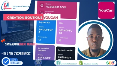 POURQUOI TRAVAILLER AVEC MON ÉQUIPE ET MOI ? • Nous analysons les besoins de nos clients pour savoir quel système de conversion est adapté à leur activité. • Nous concevons des tunnels de vente pour les entreprises et particulier depuis 04 ans. • Nous concevons des boutiques Shopyfy et Youcan pour les entreprises et particuliers. • Nous concevons les sites vitrine pour des ONG, Entreprises et des associations. Vous souhaitez digitaliser votre entreprise ou la faire passer à un autre palier ? Vous souhaitez faire passer le taux de conversion de vos boutiques de 3 à 10% grâce à nos stratégies ultra-efficace ? Vous souhaitez améliorer votre système de conversion existant ? Nous sommes l’ultime solution pour vous permettre d’atteindre vos objectifs. En effet, nous ne faisons pas que vous créez des pages web, tunnels de vente, fiches produits ou des séquences emails… Nous savons que vous souhaitez réellement c’est générer plus d’argent et faire passer votre business à un autre palier. Nous en sommes conscients et nous travaillons de sorte à ce que tout investissement que vous ferez sur nos services vous soit rentable à long terme. Nous travaillons sur votre projet comme s’il était le nôtre… Car votre satisfaction est l’essence même qui fait croitre notre entreprise. Avec 3 ans d’expériences en ingénierie logiciel et 04 ans d’expériences en marketing digital…Je saurai vous conseiller les meilleures stratégies digitales, les systèmes de conversion adéquate et enfin vous accompagner dans la réalisation. LES SERVICES QUE VOUS POUVEZ AVOIR SUR MON COMPTE ✅Conception de tunnel de vente clé en main et optimisé sur système.io : ✔️élaboration de la stratégie marketing qui permet d’atteindre vos objectifs de vente ; ✔️étude de votre projet et création d’offres irrésistibles ; ✔️élaboration d’une échelle de valeurs pour vos produits et services ; ✔️ responsive design et pages web professionnel ; ✔️Paramétrage avancé (segmentation avec les tags, campagne d’email) et automatisation ; ✔️Configuration callendy ; ✔️installation de pixel Facebook et de preuves sociales ; ✔️accompagnement et suivi complet. ✅Création des boutiques Shopyfy et Youcan : ✔️Configuration ; ✔️Conception fiche produit ; ✔️Creation de logo et page de couverture; ✔️creation des images gifs ; ✔️rédaction de vos fiches produits avec la méthode SONCAS ✅ Lancement des campagnes Facebook art ✔️Copywrithing, Ciblage avancé, Images et vidéos publicitaires. ✅Création de site web : ✔️ systeme.io ; ✔️ WordPress ; ✔️optimisation des mots clés & référencement Je suis impatient de travailler avec vous