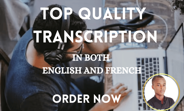Proposé par Hamed_Sawadogo •Je vais réaliser la transcription de vos fichiers audios et vidéos en Français et en Anglais Vente au total 0