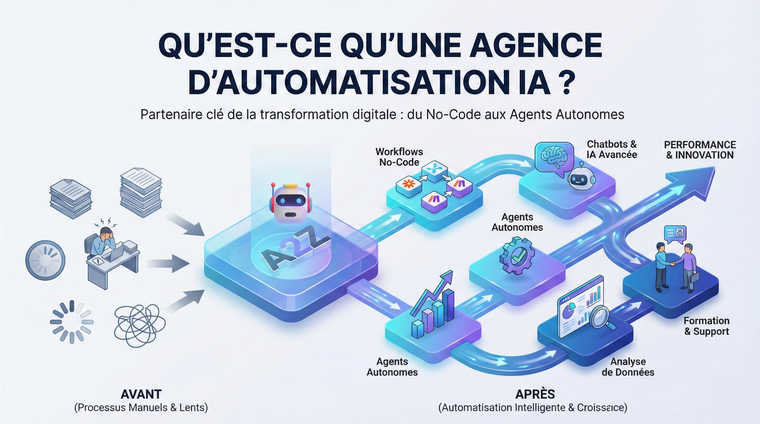Vous perdez un temps précieux sur des tâches répétitives ? A2Z Agency transforme votre business grâce à l'automatisation intelligente et l'IA générative. Nous avons automatisé les processus de grandes entreprises (Optic 2000, Interflora) et de dizaines de TPE/PME.