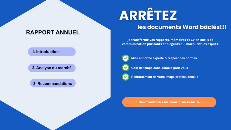 Vous souhaitez rendre votre CV, mémoire, rapport ou tout autre document propre, clair et professionnel ?