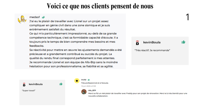 Technicien BTP expérimenté, expert Revit, AutoCAD et BIM, j'ai appliqué cette rigueur sur plus de 30 projets — pour des particuliers, des professionnels BTP, des conducteurs de travaux et des promoteurs immobiliers. Mon objectif : que votre chantier démarre sans blocage et avance sans mauvaise surprise.