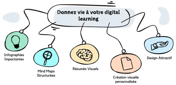 Je vais créer des infographies percutantes, mind map structurées et résumés visuels attractifs