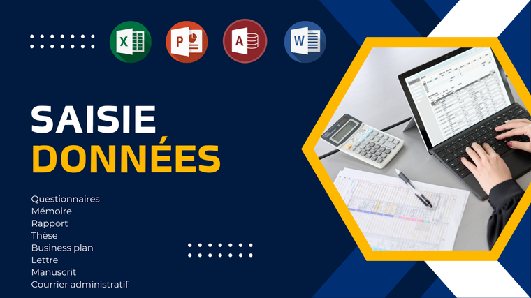 Grace à mon expertise et ma rigueur dans le domaine, je vais saisir toutes vos données et documents. La qualité du travail et la satisfaction de mes clients sont au centre de mes préoccupations.