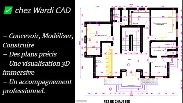 Je vais créer le plan de votre maison en 2D sur AutoCAD et le transformer en une modélisation 3D réaliste
