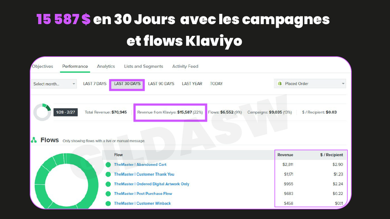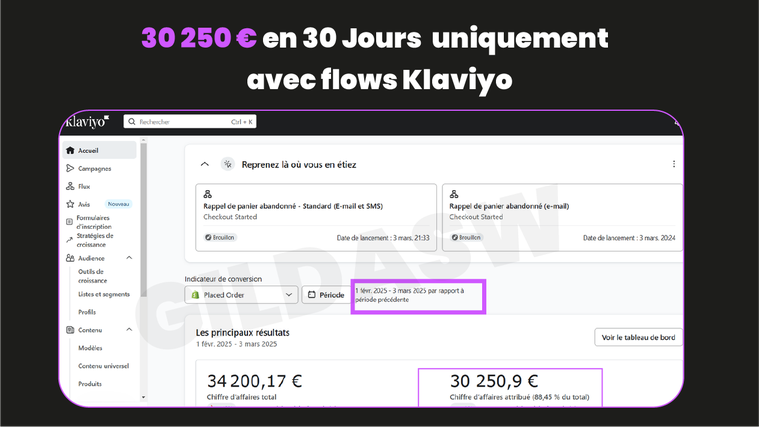➤ BillyCharini (Client ComeUp) ==⩥ 35 185,62 $US uniquement avec les flows klaviyo en 30 jours