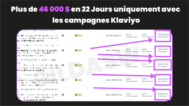 ➤ Julien (client obtenu et géré hors de la plateforme) ==⩥ 58 642,70 $US en 22 jours uniquement avec les campagns Klaviyo