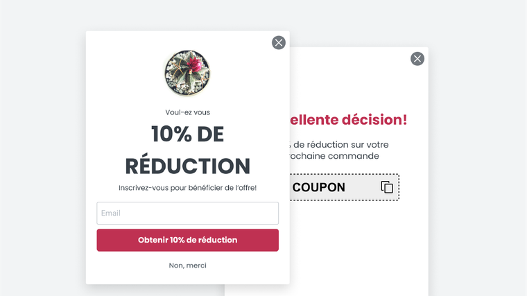 Lorsqu'un visiteur s'inscrit via un pop-up, la séquence de bienvenue lui envoie une série d'e-mails pour l'introduire à votre marque, lui offrir un code promo et l'inciter à son premier achat. Un bon onboarding augmente l'engagement et transforme rapidement les abonnés en clients.