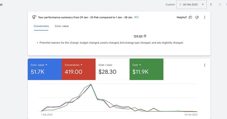 Février 2025 : Nous avons aidé une marque à mettre en place des publicités sur YouTube pendant la prévente de la Saint-Valentin, générant plus de 58 511,95 $US de ventes grâce à une combinaison de publicités sur YouTube et de campagnes de reciblage.