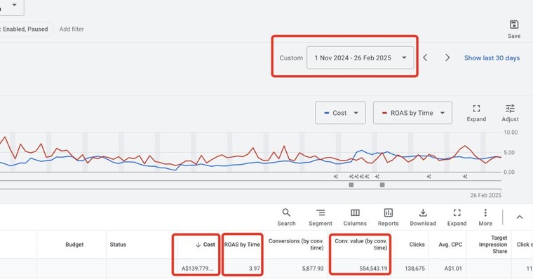 Novembre 2024 : J'ai fait passer une marque de vêtements à plus de 585 119,50 $US de chiffre d'affaires en seulement 3 mois en utilisant Google Shopping et les campagnes de recherche.