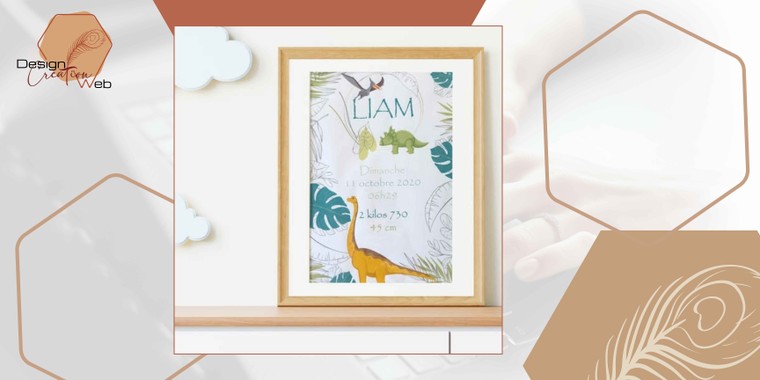 Vous me transmettez les informations que vous souhaitez inclure sur l'affiche (prénom, date de naissance, etc.).