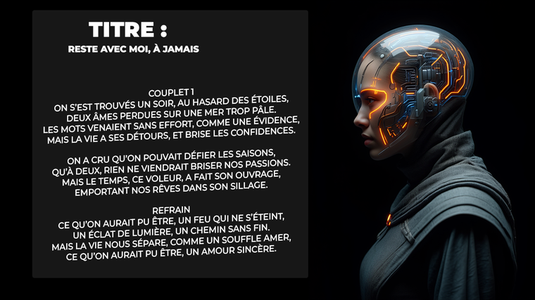 Je vais créer votre musiques Personnalisées avec l'I.A : Paroles, Audio et Voix Rythmique Professionnels
