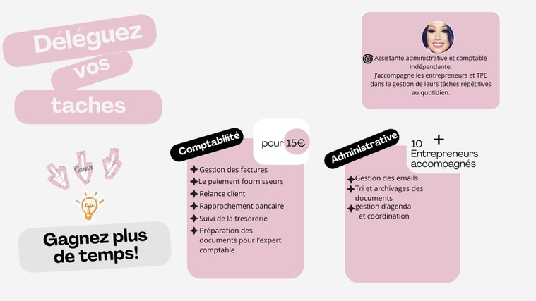 J’accompagne les entrepreneurs, TPE dans leur gestion quotidienne, avec un objectif simple : vous faire gagner du temps!