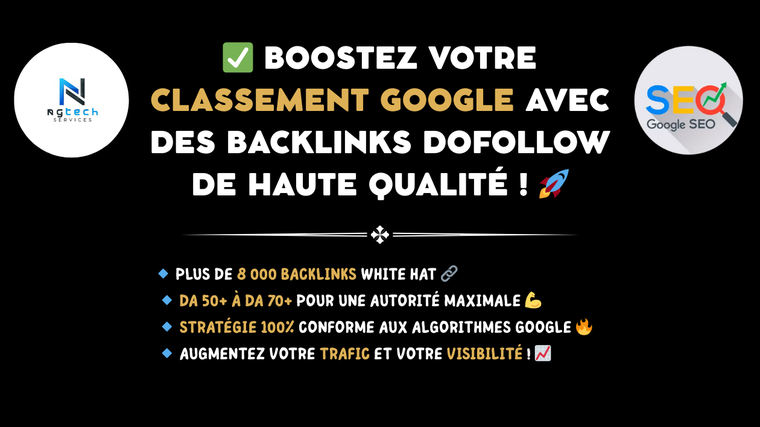 **Des backlinks DoFollow de haute qualité (DA 50+ à DA 70+)** pour booster votre classement Google