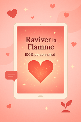 Votre couple traverse une routine ? Vous voulez retrouver passion, complicité et désir ? Je vous propose un accompagnement unique et personnalisé pour transformer votre relation en 30 jours, avec des outils concrets et adaptés à votre histoire. Chaque ebook à suivre est unique !
