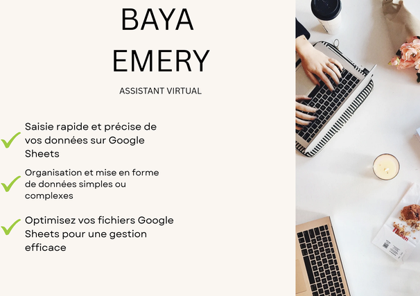 Optimisez votre temps et boostez votre productivité : des tâches chronophages réalisées et plus d'opportunités pour vous concentrer sur votre activité. Je suis Baya, une assistante virtuelle polyvalente. —Pourquoi faire appel à mes services ? Pour vous aider dans le traitement et dans la réalisation des micro-tâches qui sont importantes et contribuent au bon fonctionnement de votre entreprise et de vos projets, mais qui vous font perdre un temps précieux auquel vous pourriez le mettre sur votre activité —Qu'est-ce que vous y gagnez ? Une collaboration flexible et engagée, à l’écoute de vos besoins. Un gain de temps significatif : jusqu’à 2 heures par jour retrouvées pour vous concentrer sur vos priorités. Une organisation optimale pour améliorer l’efficacité de vos projets. Mes services : ADMINISTRATIONS ET GESTION PERSONNELLES : Gestion et classement des mails Gestion et planification de votre agenda Saisie des données et mise en forme des documents Classement et organisation de documents Compte-rendu de vos réunions virtuelles (avec enregistrement) , témoignages, vos vidéos (transcription) MODÉRATION DES RÉSEAUX SOCIAUX : modération des interactions et l'adhésion sur différentes plateformes de réseaux sociaux Modération des commentaires et des messages Réponse aux demandes client via les réseaux sociaux. Maitrise des outils : Pack office : Excel, Word, PowerPoint, Outlook Outil collaboratif : Suit Google (Docs, Sheets, Drive, etc.). Canva Outils de gestion : Notion Prêt à déléguer et à gagner du temps ? Contactez-moi dès maintenant Moyen de communication : Passionnée par l'organisation et la gestion de diverses tâches, je privilégie les échanges écrits pour assurer une communication claire et réfléchie dans nos échanges. Cela me permet de structurer mes idées efficacement tout en optimisant le suivi des tâches et des projets. Assistante virtuelle/adjointe virtuelle/gestion de la communauté