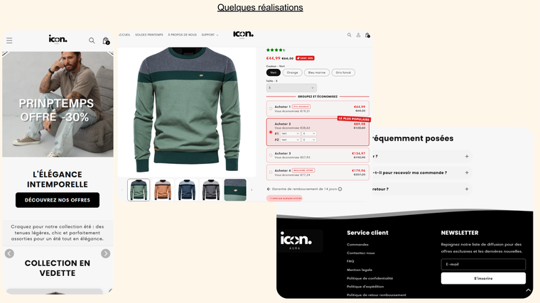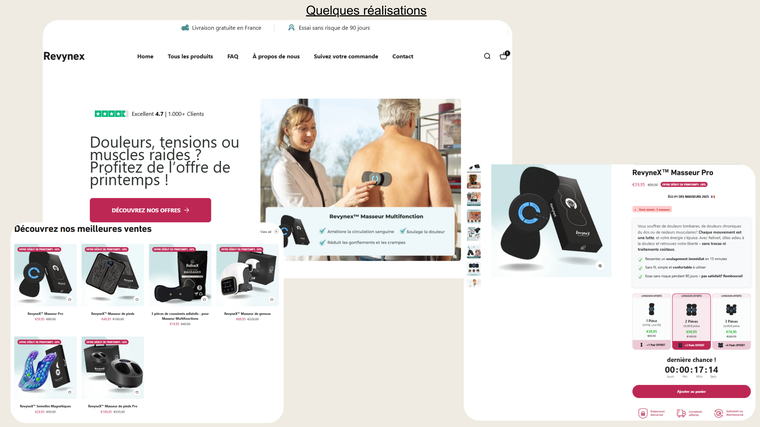 **Une boutique Shopify sur-mesure**, pensée pour **convertir les visiteurs en acheteurs**, et vous donner toutes les chances de réussir.