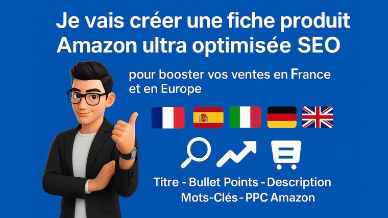 Boostez votre visibilité & vos ventes sur Amazon FR + Europe avec une fiche optimisée SEO, pensée pour capter, convaincre et convertir !