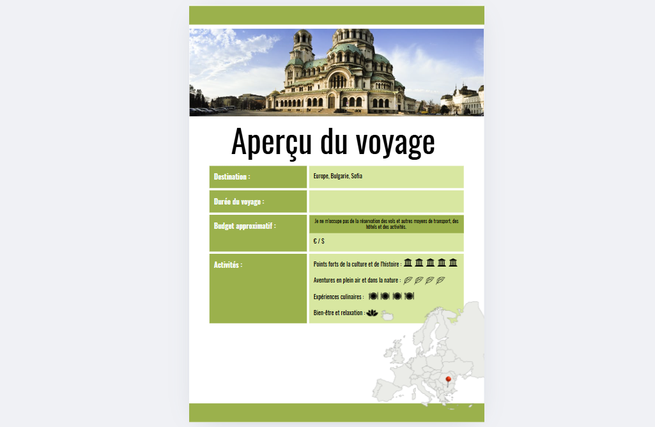 🌍 Voyageuse passionnée À 24 ans, je suis une voyageuse passionnée, avide de découvertes. J'ai eu la chance de découvrir un large éventail de destinations, notamment l'Espagne ensoleillée, les paysages sauvages des Balkans, les plages de rêve de la Martinique et la verdure mystique de l'Irlande. Mon aventure ne s'arrête pas là : Je suis constamment à la recherche de nouvelles destinations à travers le monde, prêtes à être explorées et partagées avec ceux qui, comme vous, ont soif de découverte. 🌟 🗺️ Qu'est-ce que je propose ? Des voyages sur mesure, conçus pour correspondre à vos rêves et à vos envies. Que vous soyez attiré par des escapades culturelles en Europe, des aventures insolites en Asie, des séjours de détente dans les Caraïbes, ou des explorations inédites autour du monde, je crée des itinéraires personnalisés qui vous offriront des expériences uniques. Et si vous êtes indécis ou en quête d'inspiration, je peux aussi vous proposer des destinations au hasard, parfaites pour éveiller votre curiosité et sortir des sentiers battus. 🌍 Je vous fournirai également des recommandations détaillées : hôtels de charme, lieux incontournables à visiter, activités originales, et bien plus encore. Nous avons pensé à tout pour faire de chaque voyage une expérience inoubliable. 👩🏽💻Pourquoi choisir mes services ? ✔️ Adaptabilité : Je peux créer un voyage intéressant grâce à mes recherches et à mon expérience. ✔️ Inspiration spontanée : Si vous êtes à court d'idées, je peux vous suggérer des destinations surprises qui réveilleront votre soif d'aventure. ✔️ Accompagnement personnalisé : Je m'adapte à vos envies et crée des voyages sur mesure, en vous proposant des recommandations pratiques et des conseils locaux. ✔️ Authenticité : Vous découvrirez des lieux cachés, loin des circuits touristiques habituels. ✔️ Une communication facile : Avec moi, chaque étape de votre projet est simple et sans stress (ENG & FR). Prêt à vivre un voyage mémorable et à créer des souvenirs inoubliables ? 🌟 Paulette🌞