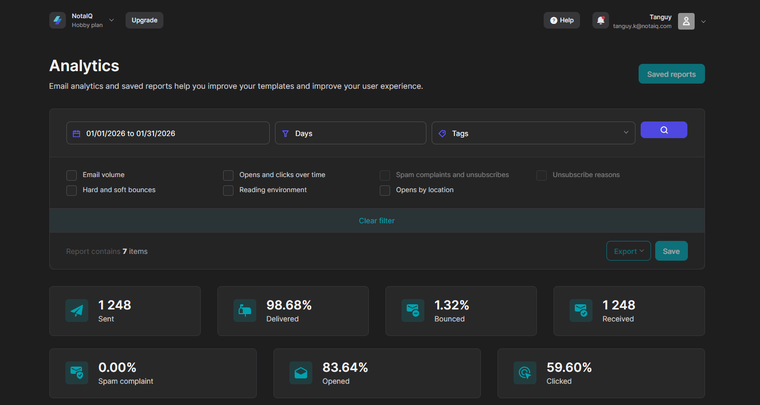 | Rapports & analytics | Taux de réponse, RDV obtenus, performances globales. |