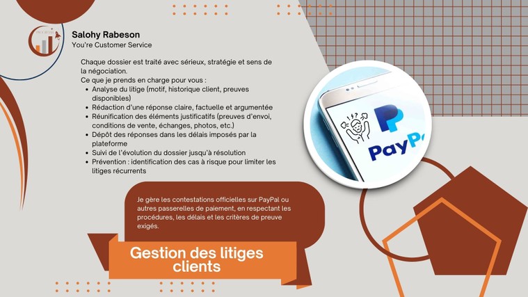 Pour seulement 17,62 $US/h, je prends en charge les demandes clients, que ce soit pour du support, des retours, des suivis de commandes ou des mises à jour... Le tout, avec un service professionnel et un accompagnement humain.