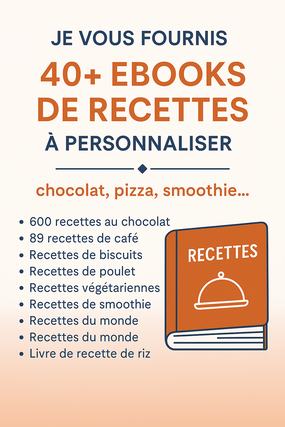 Grâce à ce pack de 40+ eBooks culinaires, vous accédez à un trésor d’idées gourmandes : des recettes sucrées, salées, traditionnelles ou originales. Que vous soyez créateur de contenu, restaurateur ou passionné de cuisine, vous y trouverez des pépites à exploiter, adapter et partager !