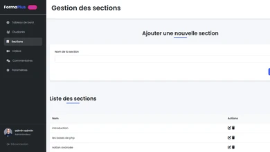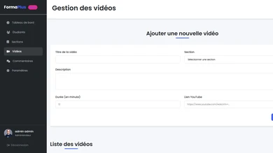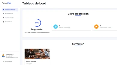 → Interface complète SaaS (Espace utilisateur + admin)