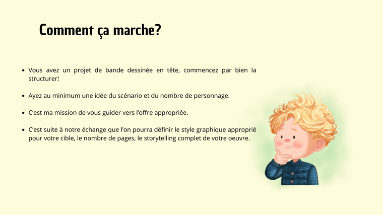 Je suis à votre écoute et prêt à transformer vos idées en BD mémorables !