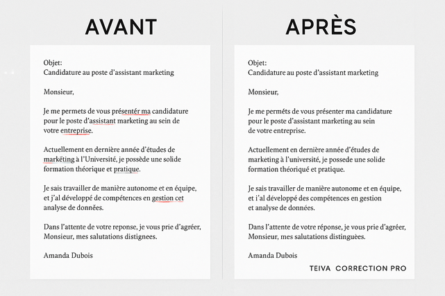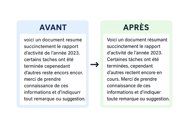 Réponse rapide garantie. Travail soigné, respect des délais, et confidentialité assurée. Faites bonne impression avec un texte sans faute !