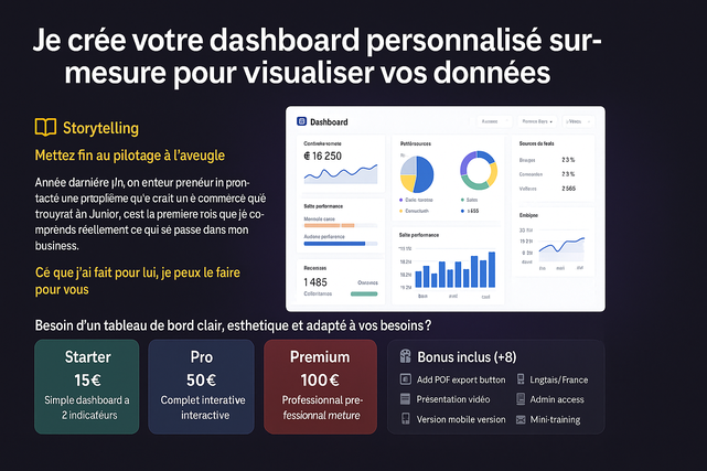 Je vais créer votre dashboard personnalisé sur-mesure pour visualiser vos données