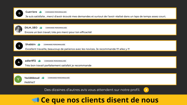 ~ NB : Ces témoignages sont authentiques et validés par la plateforme. Ils reflètent l’engagement et la satisfaction de nos clients.~