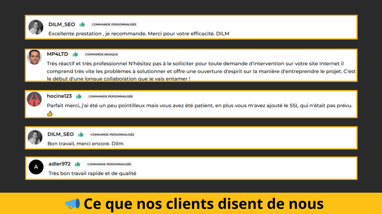 "Parfait merci, j'ai été un peu pointilleux mais vous avez été patient, en plus vous m'avez ajouté le SSL qui n'était pas prévu. "