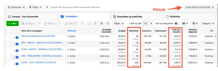 Présentation détaillée des résultats pour évaluer la performance de la campagne