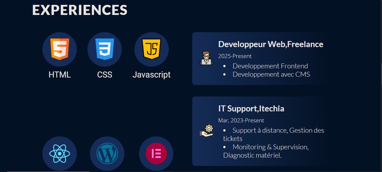 Passionné par la conception d’interfaces élégantes et performantes, je transforme des idées en applications web interactives et accessibles. Fort d’une expertise approfondie en HTML5, CSS3, JavaScript et du framework moderne comme React, je mets l’accent sur l’expérience utilisateur (UX/UI) et l’optimisation des performances.