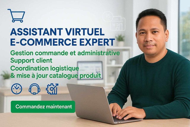 👋 Bonjour, je suis Raherison, assistant virtuel professionnel francophone, spécialisé dans la gestion administrative, le support client (SAV), la gestion commerciale, le community management et la saisie de données Excel/Word. 🎯 Vous êtes entrepreneur, e-commerçant ou indépendant ? Je vous aide à gagner un temps précieux et à améliorer la qualité de vos opérations grâce à un accompagnement rigoureux, rapide et 100 % personnalisé. ✅ Ce que je peux prendre en charge pour vous : 🔹 Assistance administrative & commerciale ◾ Gestion des e-mails, agendas, devis et factures ◾ Suivi client, relances et coordination ◾ Préparation de documents professionnels impeccables 🔹 Support client & SAV e-commerce : ◾ Réponses aux clients (e-mail, chat, téléphone) ◾ Suivi des réclamations, retours, litiges ◾ Satisfaction client et fidélisation 🔹 Community management : ◾ Création de contenus visuels et rédactionnels ◾ Animation et modération sur Facebook, Instagram, Threads… ◾ Planification de vos publications 🔹 Saisie & traitement de données : ◾ Saisie rapide et fiable sur Excel / Word ◾ Structuration, nettoyage et mise à jour de vos bases de données 📌 Pourquoi me choisir comme assistant virtuel ? ✅ Fiable, discret et réactif ✅ Travail rigoureux, livré dans les délais ✅ Excellent relationnel client ✅ Expérience multi-domaines : e-commerce, services, indépendants 💰 Tarif : 15 €/heure – prestations pro, adaptables à vos besoins 📩 Réponse rapide garantie – disponible pour missions ponctuelles ou régulières 🔐 Besoin d’un assistant virtuel autonome pour alléger votre charge de travail, structurer vos tâches ou professionnaliser votre relation client ? 👉 Contactez-moi dès maintenant et déléguez en toute confiance !