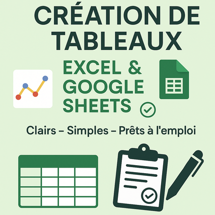 Je vous propose de créer un fichier Excel ou Google Sheet personnalisé, pour vos besoins personnels, pros ou scolaires.