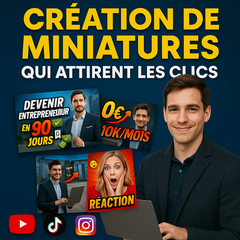Je vous propose une miniature personnalisée, optimisée pour votre public cible et adaptée à la plateforme choisie (YouTube, ComeUp, TikTok, couverture d’ebook, etc.).