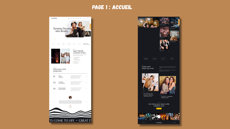 Une page visuellement forte, qui transporte immédiatement dans l’univers de vos événements :