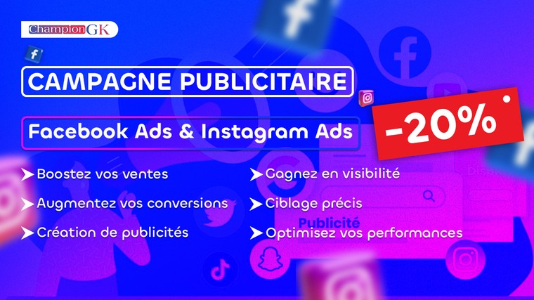 Je suis prêt à vous accompagner dans la création et la gestion de vos campagnes Facebook ADS. Mon expertise se repose sur la maîtrise de la plateforme . Chaque campagne que je crée est fortement basée sur une analyse stratégique variée selon le service et le besoin des clients et une optimisation continue . ~Tout mon objectif est de vous gérer des campagnes publicitaires très efficaces , bien optimisées avec suivi et rentables.~