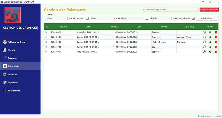 Ce que vous recevez concrètement : le fichier zip de l'application prêt à installer, le code source Python complet avec commentaires détaillés, la base de données pré-configurée avec exemples, , le manuel technique illustré , les modèles de lettres de relance personnalisables.