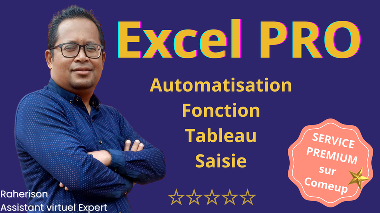 Je suis spécialisé dans la création, l’optimisation et la mise en forme de fichiers Excel professionnels. Je vous propose un service clair, rapide et sur-mesure, pour tous vos besoins de gestion de données.
