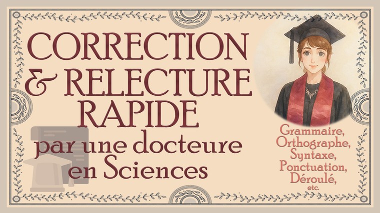 Je relis et corrige de manière professionnelle votre mémoire, thèse, dissertation, manuscrit, rapport de stage, article scientifique, ou tout autre texte (du collège au BAC+3, et jusqu'au BAC+8 dans le cas des sciences de la vie).