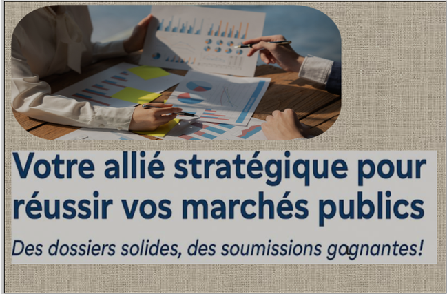 Je vais vous appuyer dans le montage des offres pour vos soumissions au marchés publics et vous former