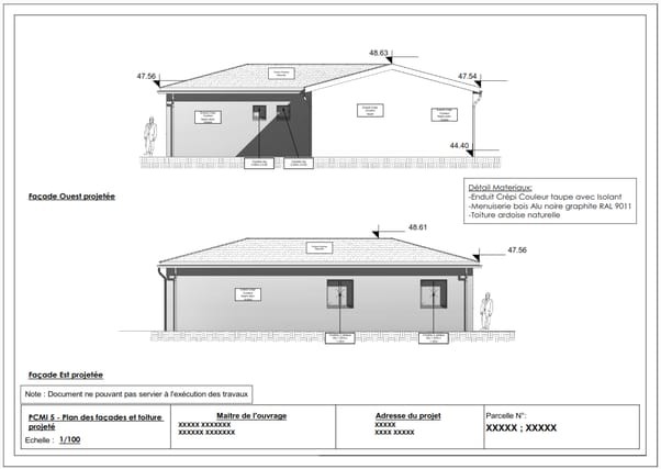 5. *PCMI 05 – Plans de façade et toiture (vue extérieure du projet, échelle 1/100)*