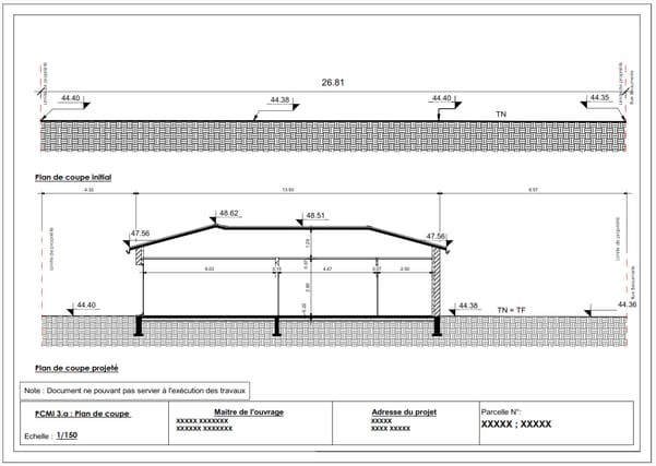 3. *PCMI 03 – Plan de coupe (pour comprendre le projet dans sa topographie, échelle 1/100)*